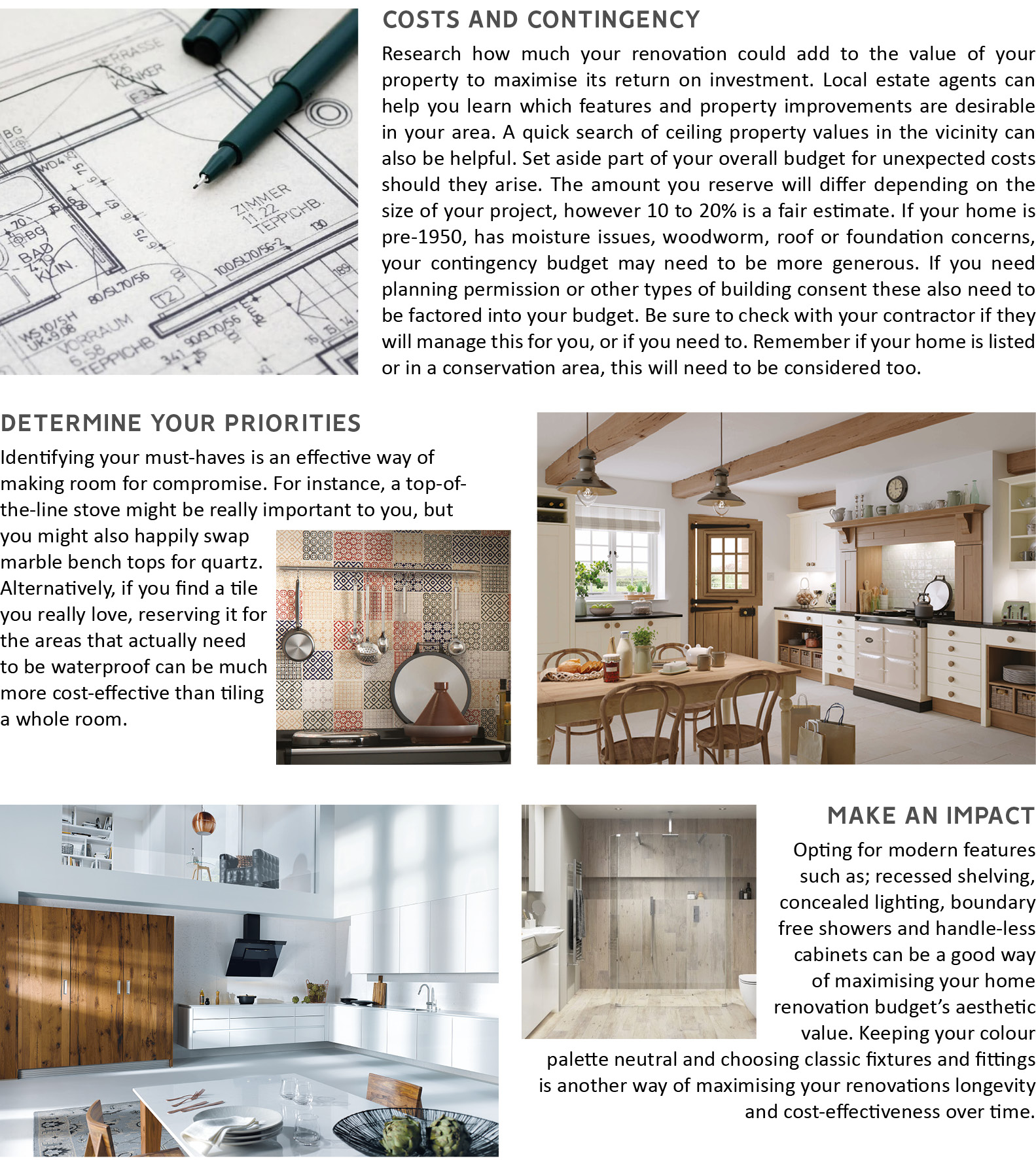 Setting a budget is an important part of any home renovation project. Good planning and working out your home renovation costs are essential. Budgets are a really helpful decision-making tool that can help you avoid unexpected costs and under or over investing. Over the next few issues the team at Forever Spaces tell us how to make your home renovation budget go further.