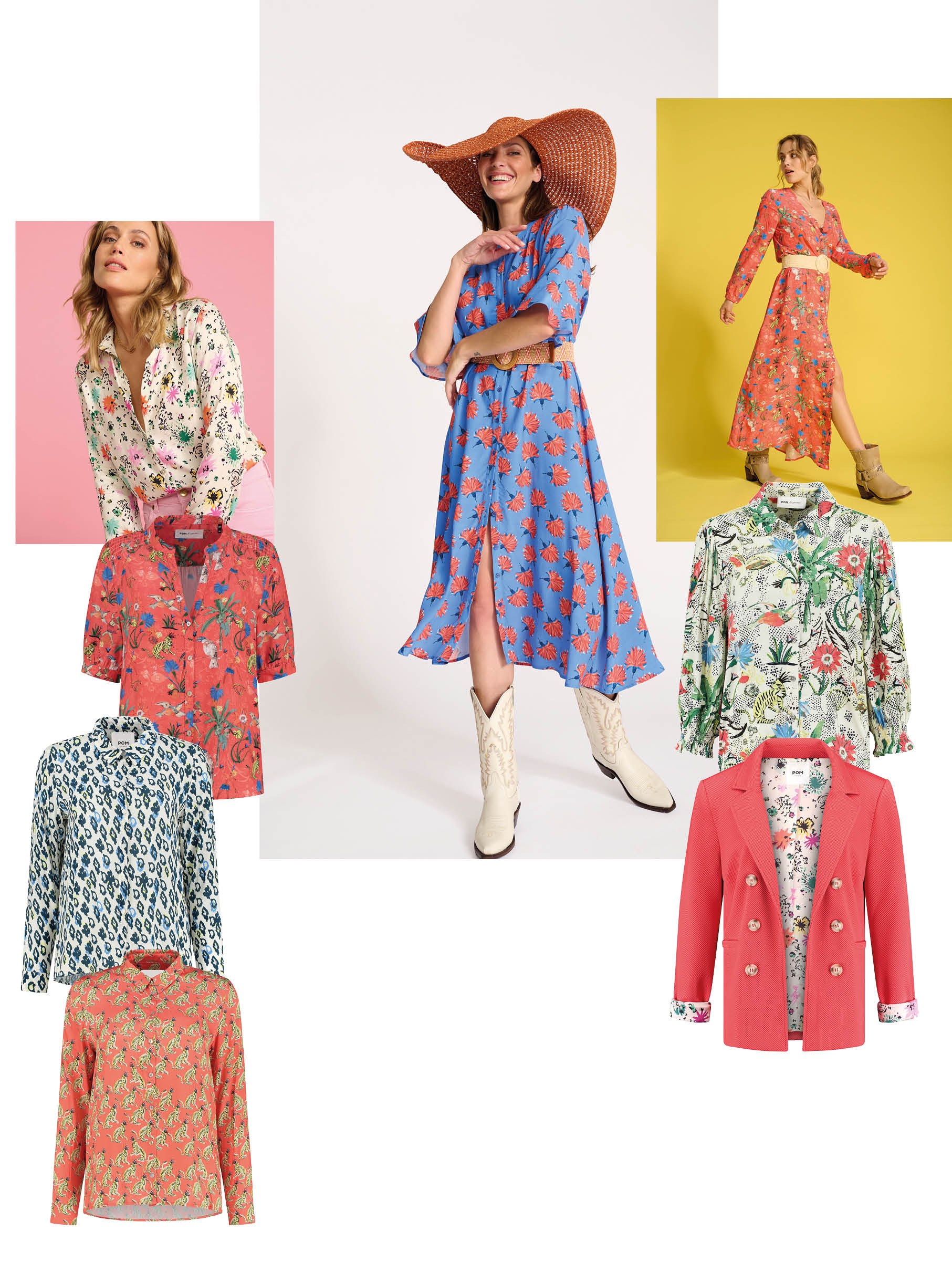Clockwise from top left: Mila Flower Blouse £109.95, Stacy Flowers Dress £129.95,