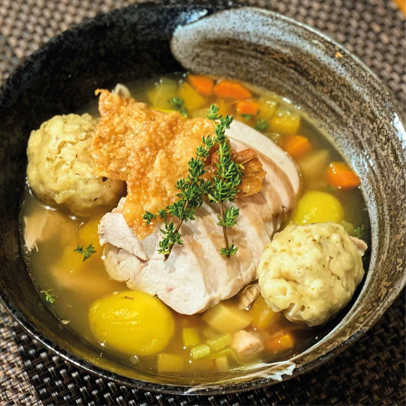 As the nights start drawing in, we all start tucking into warming dishes of food. Homemade soups, roast dinners (although we have them all year round), and warm hearty stews begin to appear on everyone’s home dinner menu. Chef Lewis’s Chicken Stew and Dumplings is one of those dishes in Casa L&C. We use the amazing Pasture Poultry chickens at home and in our café in Gifford. Katie is the mastermind behind Pasture Poultry, based in the Scottish Borders, and her chickens, due to their free-range, slow-growing lifestyle and corn-fed diet, are much larger than the chickens most of us are used to. One chicken can easily provide a roast dinner for a family with leftovers. However, we like to break the chicken down to make several meals from the one chook! Check out our instructions on breaking down a chicken, and follow Local Life and us on Instagram for more recipe ideas