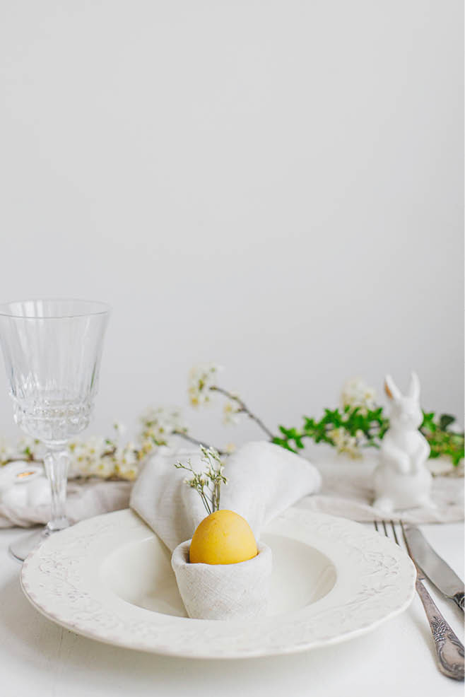 Personalise each place setting with an Easter gift – then scatter a few mini chocolate eggs and add a small sprig of fresh flowers for a seasonal finish.