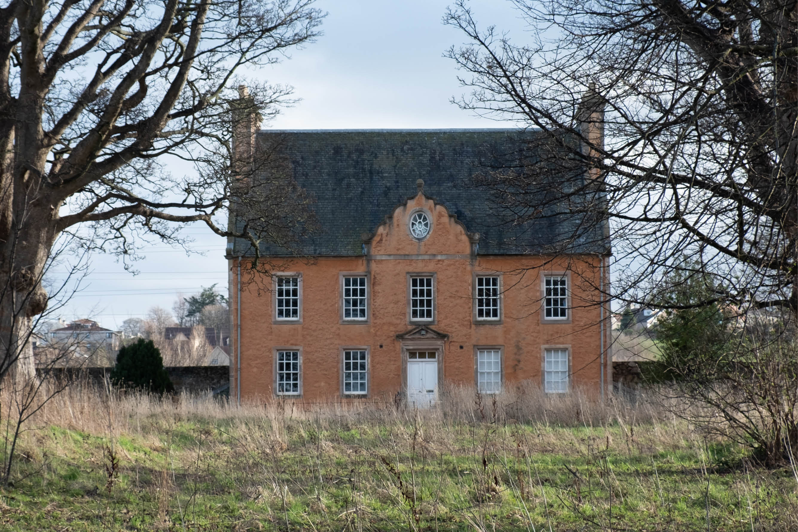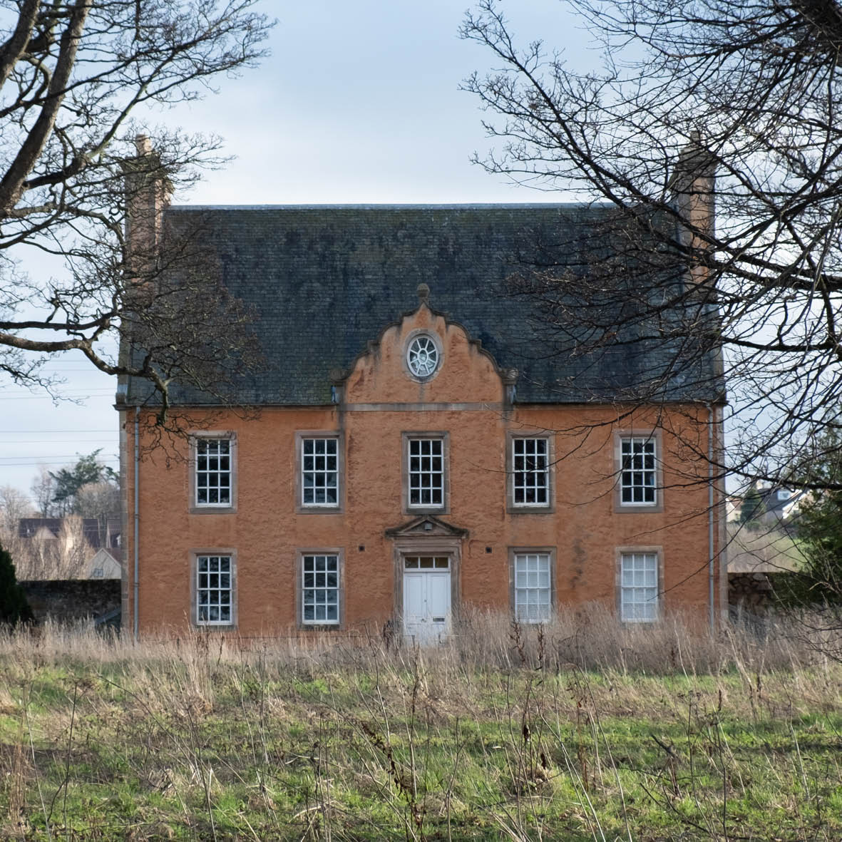 The property was originally known by the lovely name of ‘Olivestob’, with the house being built around 1720. It very much follows the fashions of the day, a solid symmetrical building with decorative flourishes inspired by the classical past around the main entrance and roofline. The stonework is harled, covered in a lime-based coating, often used at the time to help weatherproof the building. A coloured lime wash was also applied as part of the restoration, a mixture known as copperas, which gives the building its distinctive orangey colour.