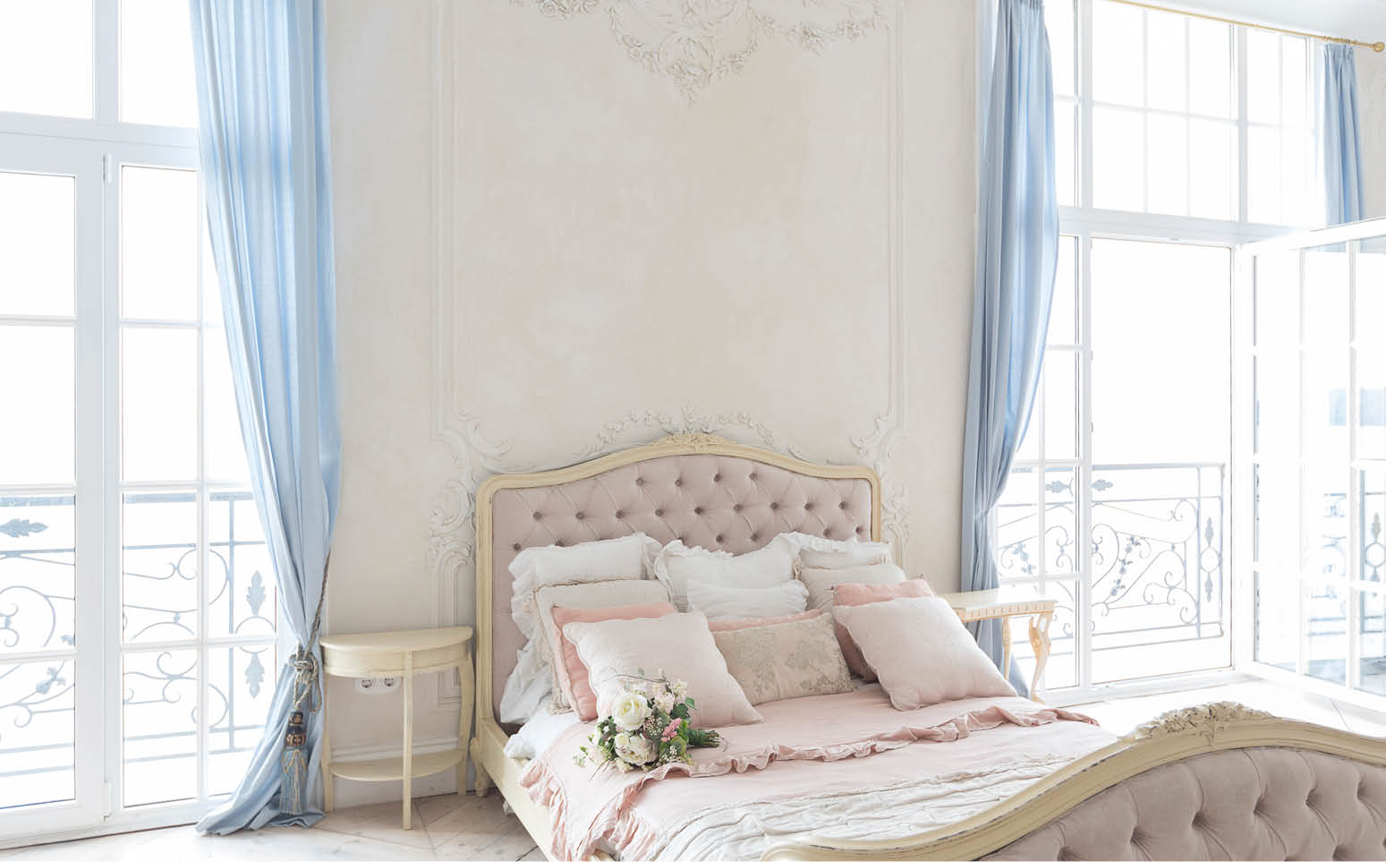 Modern romantic décor, by contrast, is far humbler and less outwardly decadent. Though comfort and subtle luxury still play key roles, there is far less flamboyance. In particular, the palate is more muted, with beige, pale rose, lavender and powder blue taking centre stage.