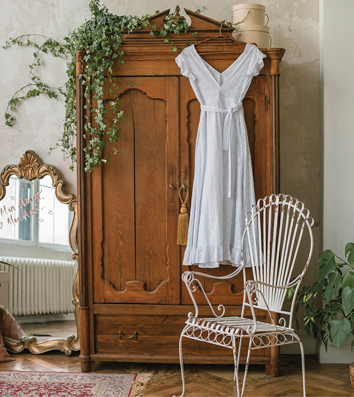 The updated look still incorporates curved lines, but there is less intricacy. Choose wooden furniture with a more French rustic feel – a solid wooden dining table, a vintage armoire in washed-out grey or an antique chest of drawers that boasts more curves than a corseted lady.