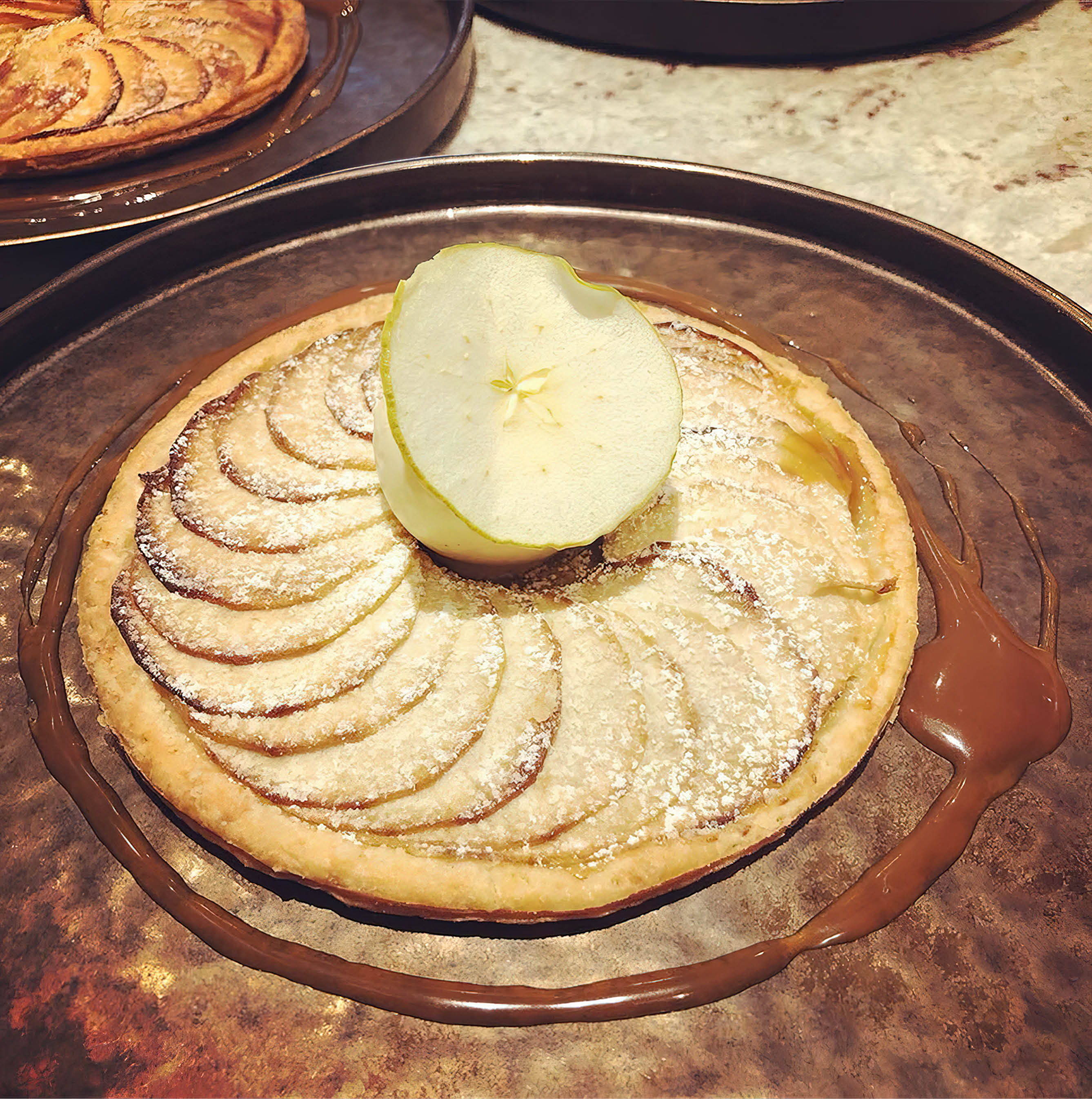 - Lay the apples overlapping in a concentric circle. This will take approximately two apples per tart. As the apple is the star of the show, keep the overlapping tight. Brush over the top of the apples with melted butter and sprinkle generously with sugar.
