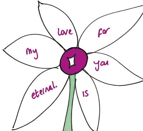 I remember looking at this doodle before I went to a cross-fit session one Friday morning. Later that day, a dear friend was looking at a photo taken of my husband and me – a couple of years before my time in the Priory. It’s a lovely picture; many people comment on it; we look so happy. We had been skiing on our own for a few days, and the photo was taken by one of the roving photographers. But looking at it always caused bitter-sweet memories. Our unquestioned thoughts can ruin many beautiful, magical times, taking away from our natural joy. This is why we must realise we are not our thoughts, and the thoughts causing suffering need to be questioned. My friend loved the photo, but after chatting, she understood why I always looked wistful when she admired it. So there and then, I looked at the figures in the photo with new eyes and to both my husband and myself, I whispered again, “My love for you is eternal”.