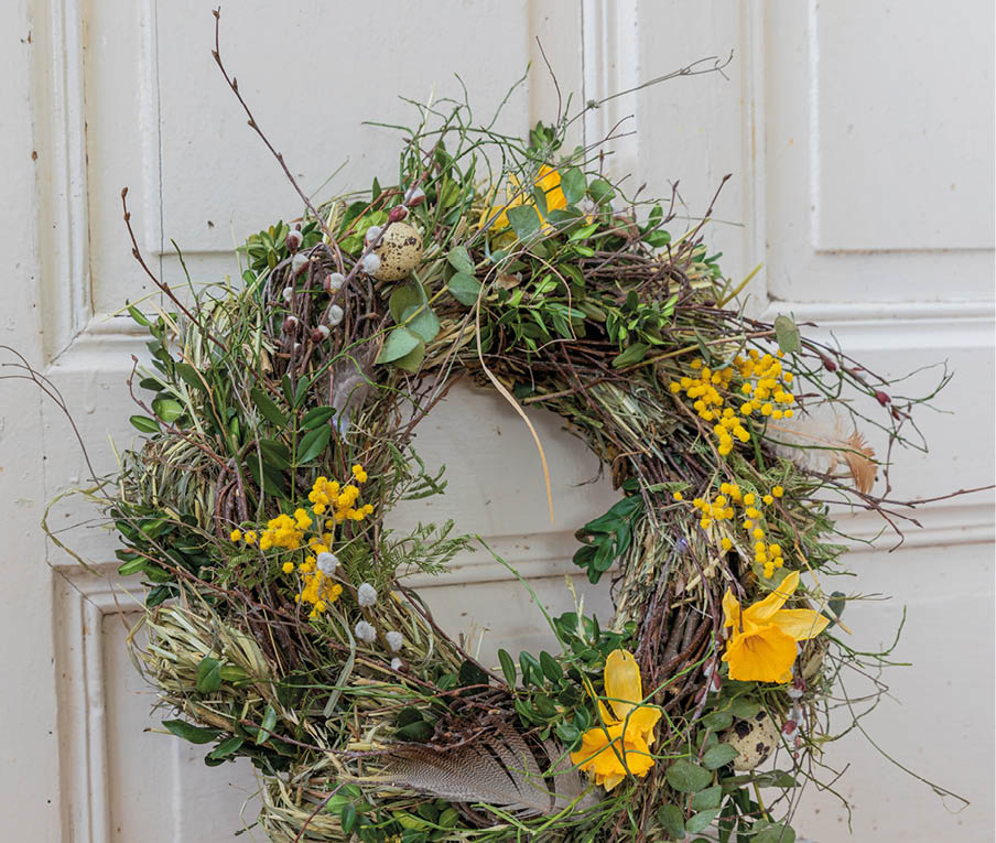 Some Christmas traditions have a fresher and more optimistic vibe come Easter, with wreaths being a perfect example. A spring wreath crafted from catkins showcases a natural, rustic appeal and can be used as is or as a base for extra greenery. Brighten it up with daffodils for a delightful spring look.
