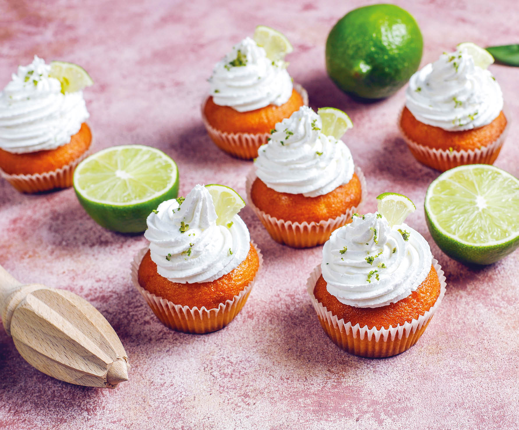 5. Add buttercream to a piping bag with a piping nozzle of your choice. Pipe the buttercream over the cupcakes however you like. Top each cupcake with a slice of lime, a sprinkling of lime zest and, if desired, a mini umbrella.